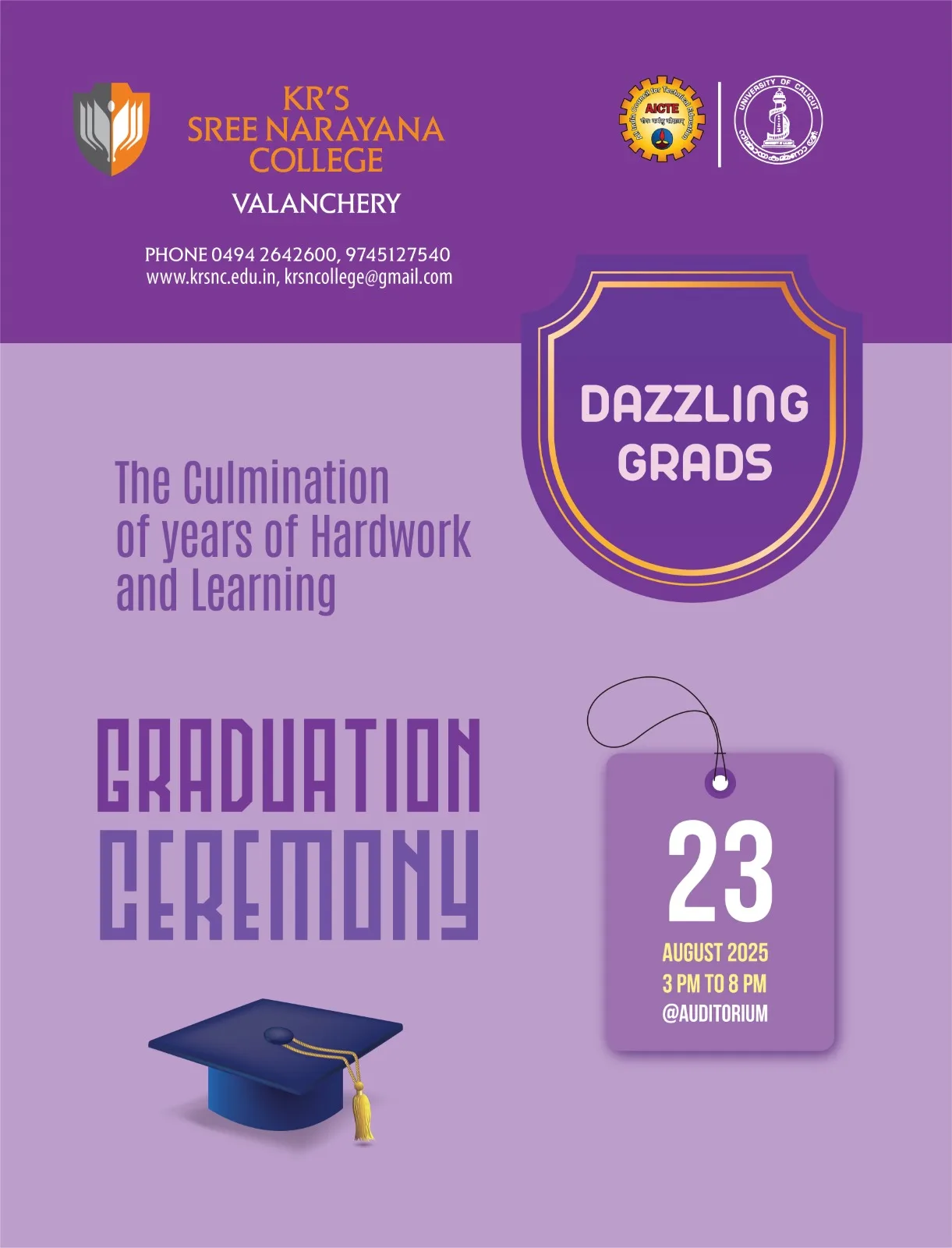 The Graduation Day Ceremony – Dazzling Grads was held on Saturday, 23rd August 2025, at the KRSNC Auditorium from 3:00 pm to 7:00 pm. The event was a grand celebration of the graduating students, marking the successful completion of their academic journey and the beginning of new horizons.
