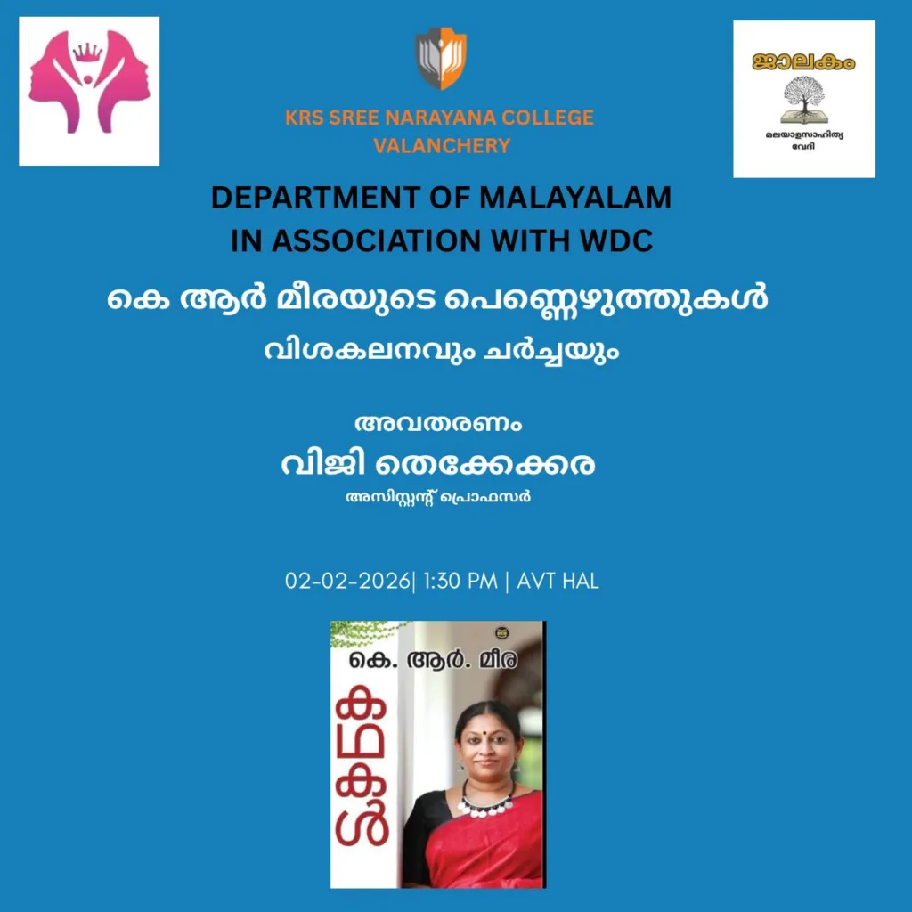 Seminar on the Literary Contributions of K. R. Meera The Department of Malayalam, KR’s Sree Narayana College, Valanchery, in association with the Women Development Cell
