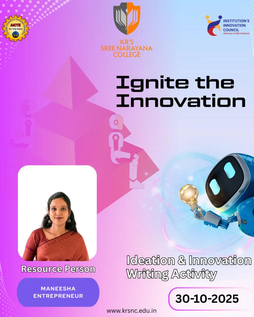 Ideation & Innovation Writing Activity The Institution’s Innovation Council (IIC) of KR’s Sree Narayana College presents Ignite the Innovation, an engaging ideation and creative writing